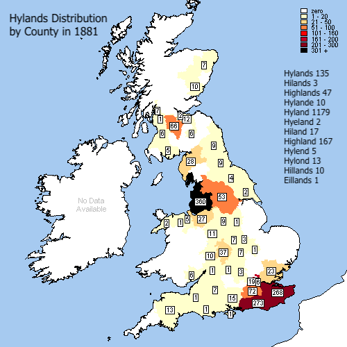 I have since concluded that there is no direct link between the English and Irish Hylands and that they have two distinct origins. I very quickly concluded that the Hylands name has no link to the geographical Highlands of Scotland.